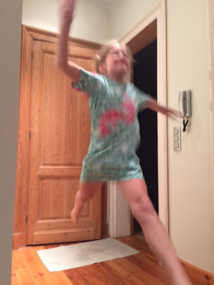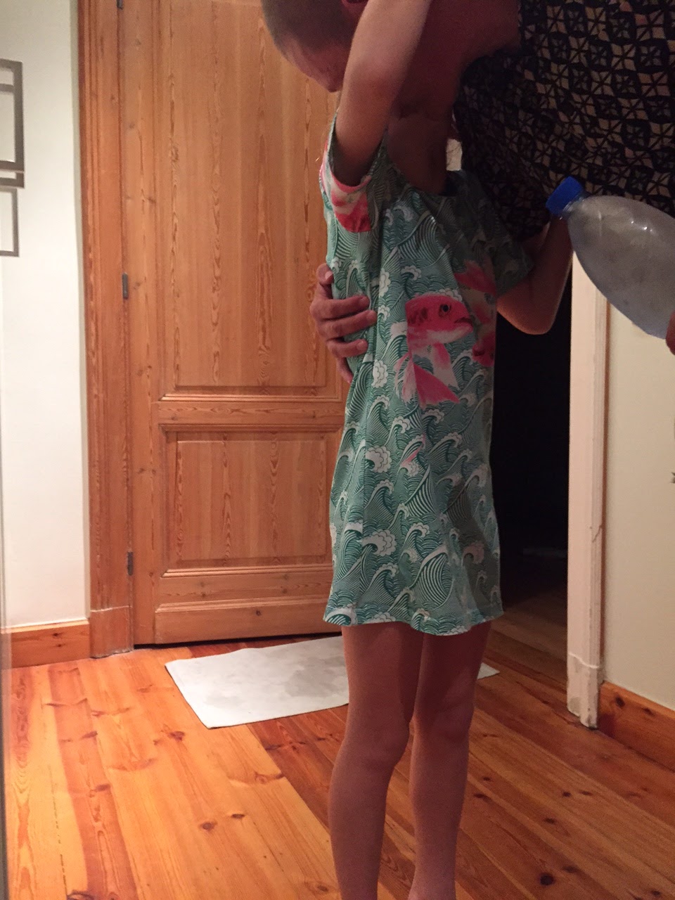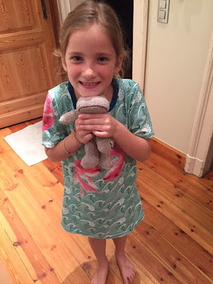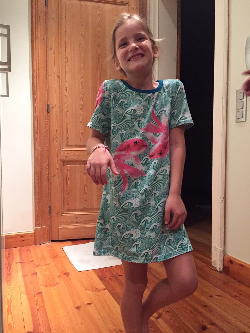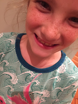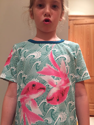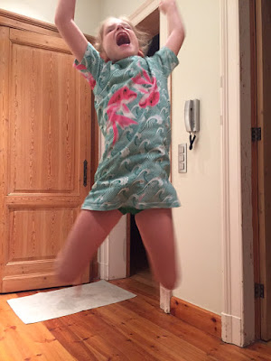 Jade got a consolation prize, a long-sleeves-Tshirt-style jumper in fabric of her own choice. The promised glitter hoody for Jade will be sewed when we have time to buy new glitter fabric in her favorite color, blue!