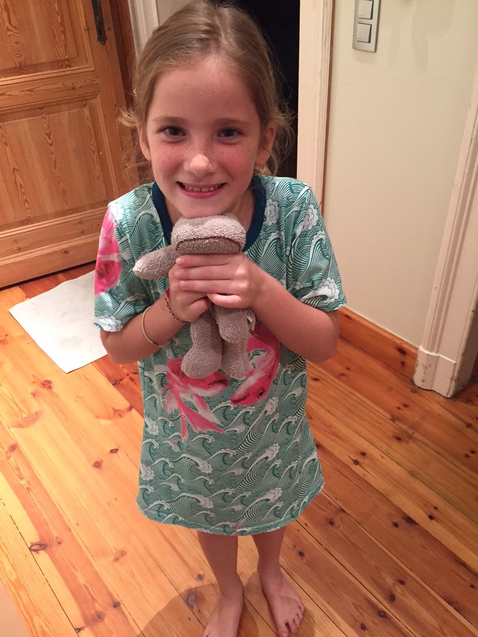 Rainy days! We hope we would be spared this year, nevertheless we came to Belgium prepared. Two hoodies for Jade who appeared to be too small went straight to Felix. The first print was luckily unisex and highly appreciated by our little man.